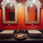 Trevligt badrum i ett bekvämt rum. Olika slags restauranger och mycket bra restauranger för att äta utanför hotellet.